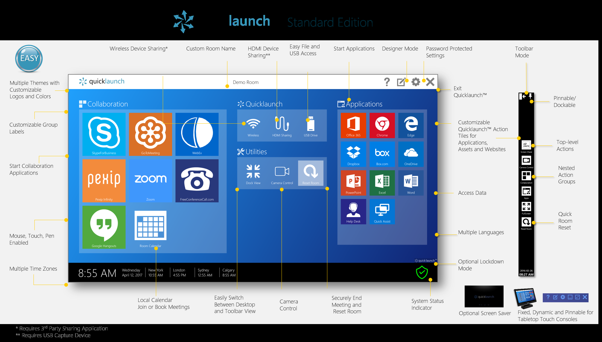 - IF the meeting room is to be configured in Lockdown Mode there are two options. Either the “Meeting Room" account has local administration rights on the target machine OR Lockdown Manager is installed and configured to support Lockdown Mode with a local User account (this machine MUST be a dedicated Quicklaunch Kiosk - See How to install Quicklaunch to a local User account for more details).