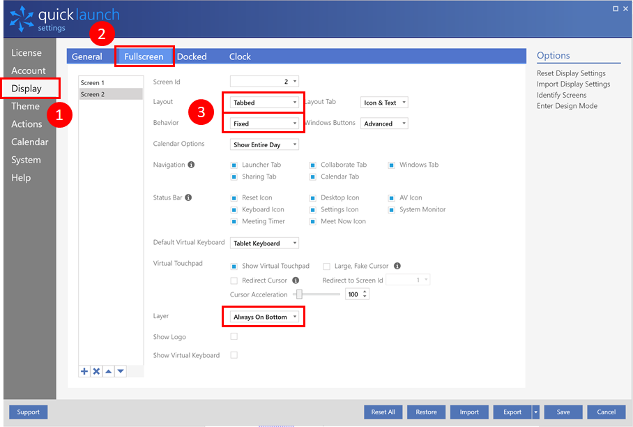 - Quicklaunch FIXED display is the tabletop console and in DYNAMIC on the Main Display , Quicklaunch is FIXED on Console
